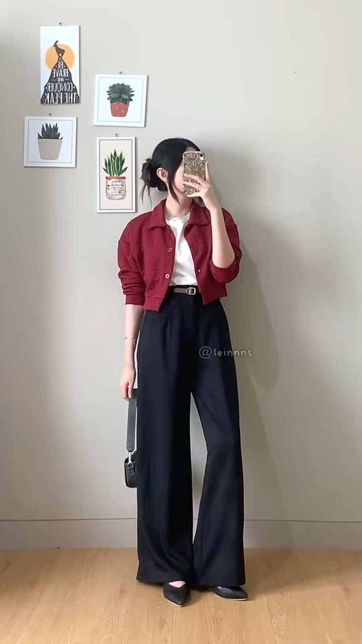 Paired with a mini handbag and soft curls, this outfit embodies the Korean “soft girl” aesthetic — minimalist yet graceful, with an emphasis on pastel tones, delicate details, and a clean silhouette.